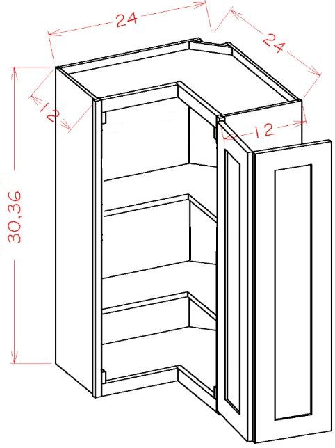 30" Tall by 24" Wide Wall Square Corner Cabinet with Bi -Fold 2 Doors, | (24"W x 30"H x 12"D)