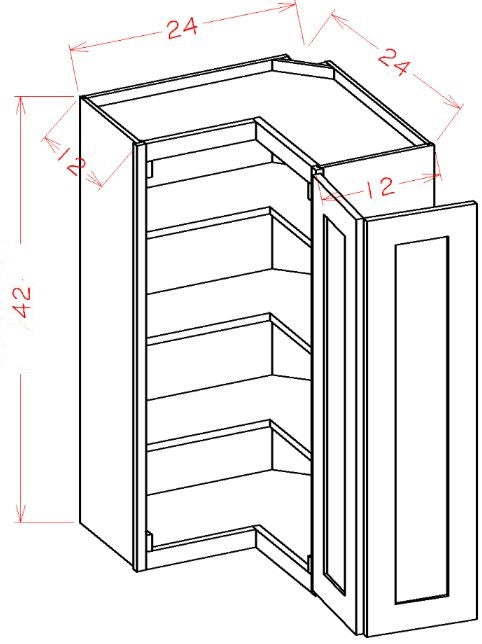42" Tall by 24" Wide Wall Square Corner Cabinet with Bi -Fold 2 Doors, | (24"W x 42"H x 12"D)