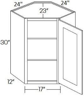 30" Tall by 24" On Angle Wide Single Door | (24" OAW x 30" H x 12" D)