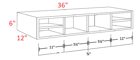 6" Tall by 36" Wide - Finished Interior | (36"W x 12"D x 6"H)