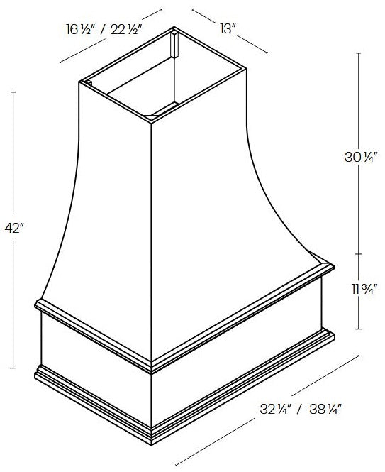 42" Tall by 32.25" Wide Traditional Wood Hood | Metal Liner Included