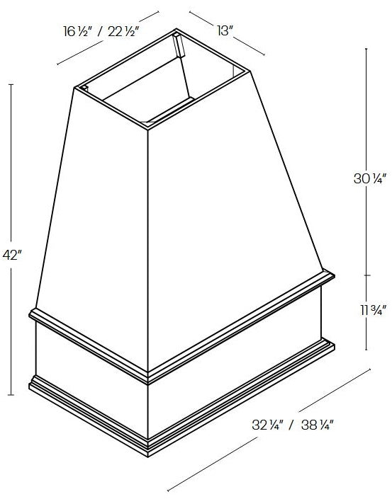 42" Tall by 32.25" Wide Boxed Wood Hood | Metal Liner Included