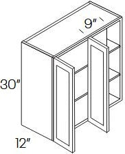 30" Tall by 24" Wide Wall Square Corner Cabinet with Bi -Fold 2 Doors, | (24" W x 30" H x 12" D)