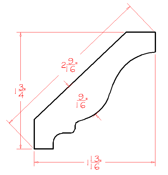 96" Long by 1.75" Tall Finished Crown Molding | (1.75"T x 96"L x 2"D)